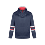 260 gsm – 7.7 oz./yd2 – 13 oz./lin. yd 100% polyester one side brushed fleece, anti-pill finish. Jersey lined hood. Kangaroo pocket. Contrast striping on sleeves and inside hood opening. Contrast taping at back neck and hem vents. Phone pocket hidden under kangaroo pocket. Adjustable hockey lace at neckline (not available on youth). Show your team spirit, additional hockey lace colours sold separately. V split hemmed body.